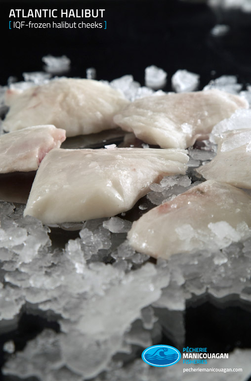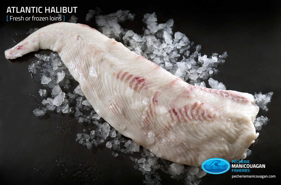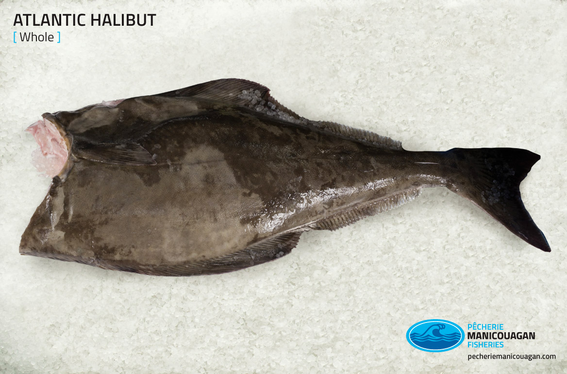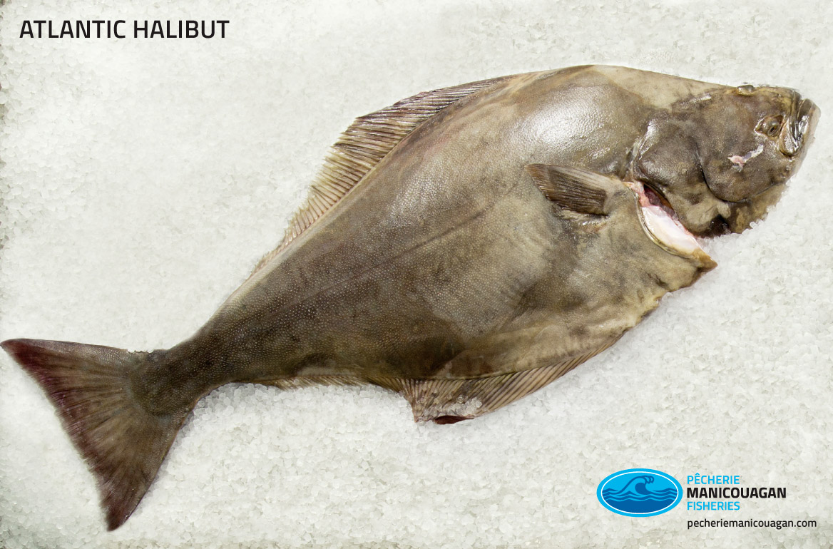 Halibut is the largest of all flat fish and can reach 2.5 meters in length and weigh over 200 kg. This fish lives in the deep waters of the Western Atlantic Ocean and the Gulf of St. Lawrence and only rarely enters areas less than 60 meters deep. It is fished from April until September.